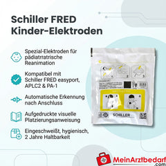 Contenuto della fornitura: 1 coppia di elettrodi adesivi pediatrici (pad pediatrici) per Schiller FRED easyport / APLC2 / PA-1, confezionati singolarmente, monouso - Produttore: Schiller.