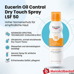 Eucerin Oil Control Dry Touch Spray SPF 50, 200 ml - Protezione solare per pelli sensibili e a tendenza acneica