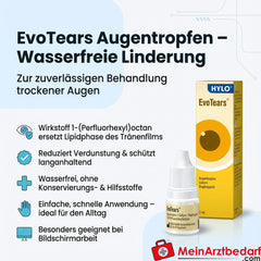 Il collirio EvoTears fornisce un sollievo mirato per la secchezza oculare sostituendo la fase lipidica del film lacrimale. La formulazione anidra, priva di conservanti, riduce l'evaporazione e protegge da sintomi quali la sensazione di corpo estraneo e l'irritazione, ad esempio dopo un uso prolungato dello schermo.