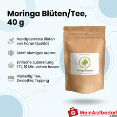 Contenuto della fornitura: 1 x tè ai fiori di moringa da 40 g, fiori di moringa sfusi raccolti a mano. Produttore: Vitalundfitmit100