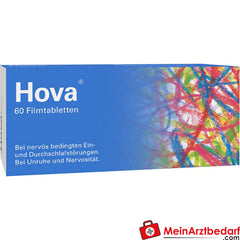Il medicinale a base di erbe Hova ha un effetto calmante e rilassante grazie al luppolo e alla valeriana. - Il dosaggio sufficientemente elevato mostra un effetto rapido e una buona tollerabilità. Assunto la sera, Hova favorisce l'addormentamento e il mantenimento del sonno. Durante il giorno, l'effetto calmante di Hova garantisce una maggiore serenità.