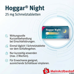Contenuto della fornitura: 1 confezione di Hoggar Night Doxylamine 25 mg compresse orodispersibili.