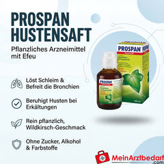 - Grazie al potere dell'edera, Prospan scioglie il muco, libera i bronchi e calma la tosse. Prospan è un prodotto puramente vegetale, ben tollerato, adatto a tutte le età e disponibile in varie forme di applicazione. Il collaudato sciroppo per la tosse Prospan allevia efficacemente la tosse e ha un piacevole sapore fruttato di ciliegia selvatica. Piace soprattutto ai bambini. È ideale per l'uso a casa. Adatto ai bambini da 1 mese (fino a 12 mesi dopo aver consultato il medico) senza zucchero, senza alcol e senza coloranti. Adatto ai diabetici.