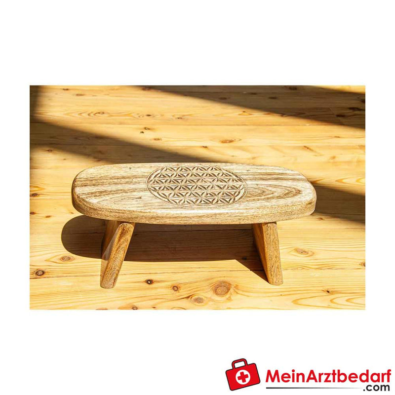 Sgabello da meditazione in legno di mango Berk alto 15 cm - 40×18 cm con fiore della vita