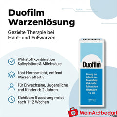 Duofilm contiene i principi attivi acido salicilico e acido lattico. Questi sciolgono lo strato di cellule cornee, portando alla dissoluzione della verruca.
