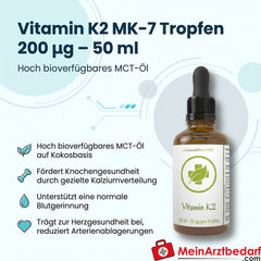 Contenuto della fornitura: 1 flacone di vitamina K2 MK-7 200 µg gocce di menachinone, 50 ml Produttore: Vitalundfitmit100