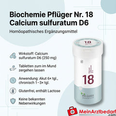 Leveringsomvang: 1 pak Biochemie Pflüger® Nr. 18 Calcium sulfuratum D6 250 mg tabletten (verpakkingsgrootte afhankelijk van de gekozen variant) - Fabrikant: Biochemie Pflüger