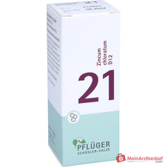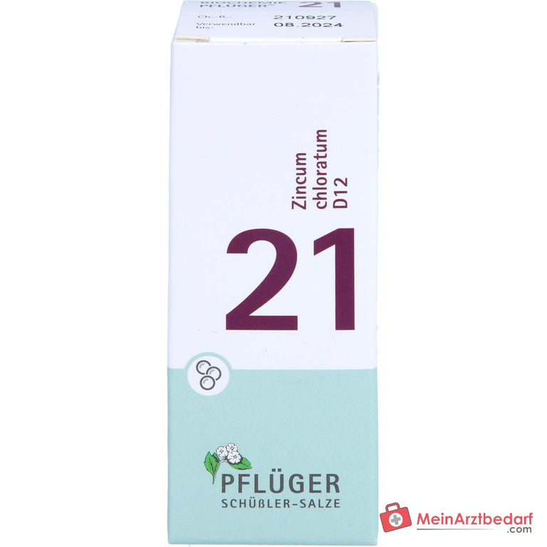 Biochemie Pflüger Globuli Nr. 21 Zincum chloratum D12 zijn homeopathische globules (balletjes) met de werkzame stof Zincum chloratum Dil. D12 (Schüssler-zout nr. 21). Biochemie Pflüger Globuli Nr. 21 Zincum chloratum D12 is een geregistreerd homeopathisch geneesmiddel, daarom zonder specificatie van een therapeutische indicatie. Bij langdurig aanhoudende ziektesymptomen tijdens het gebruik van het geneesmiddel dient medisch advies te worden ingewonnen.