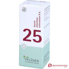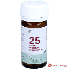 Leveringsomvang: 1 pak Biochemie Pflüger nr. 25 Aurum chloratum natronatum D6, Natriumtetrachloroauratum D6 250 mg per tablet, mondoplosbare tabletten - Fabrikant: Biochemie Pflüger.