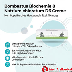 Leveringsomvang: 1 tube Bombastus Biochemistry 8 Sodium chloratum D6 crème, 10 mg/g (uitwendige crème) - Fabrikant: Bombastus