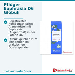 Euphrasia D6 Globuli Pflüger. Toepassingsgebieden: Geregistreerd homeopathisch geneesmiddel, daarom zonder vermelding van een therapeutische indicatie. Waarschuwing: Bevat saccharose.