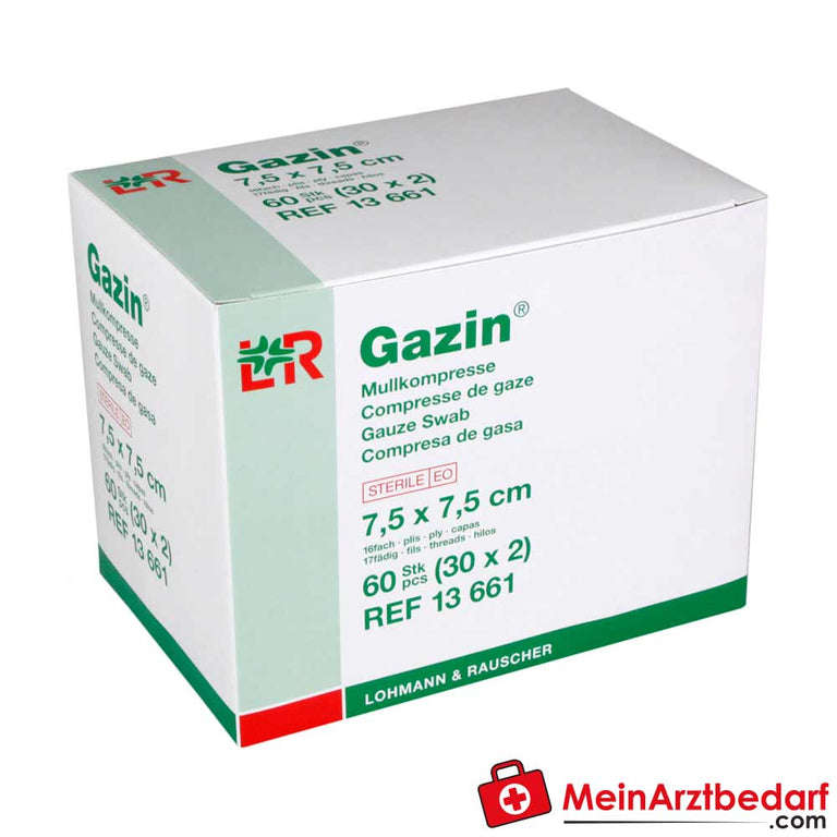 Leveringsomvang: 100 stuks Gazin gaaskompressen niet-steriel, 100% katoen, met röntgencontrastdraad - Fabrikant: Gazin®