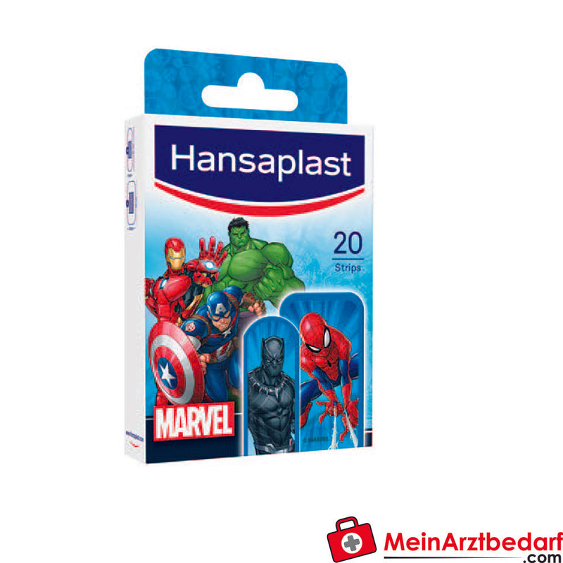 worden schrammen, snijwonden en schaafwonden goed verzorgd. Deze superheldenpleisters helpen kleine wondjes te behandelen zonder zorgen. Kies uit een brede selectie van je favoriete MARVEL superheldenpleisters. Het Hansaplast Bacteria Shield beschermt tegen vuil en 99% van de bacteriën. Onze jarenlange expertise op het gebied van wondverzorging zorgt voor een betrouwbare wondbescherming. De veilige kleuren en pijnloze verwijdering van de pleisters maken ze prettig in gebruik. Het flexibele materiaal is waterbestendig en beschermt tegen vuil en bacteriën. De pleisters zijn verkrijgbaar in twee maten: 14 stroken van 19 x 55 mm en 6 stroken van 30 x 55 mm.