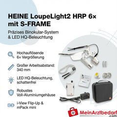 Leveringsomvang: 1 x Heine LoupeLight2 Set - HRP 6× Binoculaire Loep 340 mm met S-FRAME en mPack mini - Fabrikant: Heine