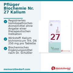 Leveringsomvang: 1 pak Biochemie Pflüger Nr. 27 Kaliumbichromicum D6 250 mg tabletten - Fabrikant: Biochemie Pflüger.