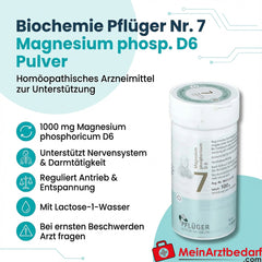 Leveringsomvang: 1 pak Pflügler Biochemie Nr. 7 Magnesium phosphoricum D6, 1000 mg oplosbaar poeder - Fabrikant: Pflügler Biochemie