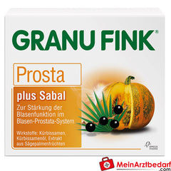 Om het blaas-prostaat systeem te versterken, biedt GRANU FINK® Prosta plus Sabal een bewezen combinatie van actieve ingrediënten van medicinale pompoen en Sabal. Dit kruidenpreparaat kan worden gebruikt voor de behandeling van veel voorkomende problemen zoals een verhoogde aandrang om te plassen, een vertraagd begin van het plassen en een gevoel van druk op de blaas. De capsules bevatten pompoenpitten en droge extracten van zaagpalmbladeren voor een effectieve versterking van het hele blaas- en prostaatgebied. De natuurlijke ingrediënten van GRANU FINK® Prosta plus Sabal worden goed verdragen en kunnen de levenskwaliteit helpen verbeteren. Neem driemaal daags een capsule om te profiteren van de positieve effecten van dit kruidengeneesmiddel.
