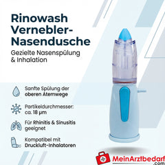 Het Air Liquide Rinowash neusbad is speciaal ontwikkeld om de slijmvliezen van de bovenste luchtwegen zacht te behandelen en te ondersteunen. Dankzij de micronisatie produceert de vernevelaar uiterst fijne deeltjes (ongeveer 18 µm) die optimaal kunnen worden afgezet in de neusholten en bijholten. Geschikt voor gebruik bij rhinitis, rhinosinusitis, neuspoliepen of adenoïdaandoeningen.