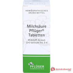 Melkzuur Pflüger® Tabletten zijn een geregistreerd homeopathisch geneesmiddel voor ondersteunend gebruik bij klachten volgens de bijsluiter. De tabletten bevatten melkzuur als werkzaam bestanddeel en zijn bedoeld voor kortdurend, acuut en gelijktijdig chronisch gebruik. Raadpleeg een arts als de klachten aanhouden of verergeren.