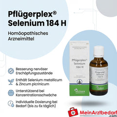 Pflügerplex Selenium 184 H is een homeopathisch geneesmiddel ter verbetering van nerveuze uitputting en het daarmee gepaard gaande gebrek aan concentratie. De samenstelling bevat onder andere Selenium metallicum, Zincum picrinicum, Panax quinquefolius en Kalium phosphoricum in bolvorm, verpakking van 50 g.