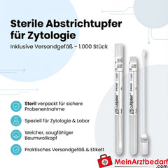 Steriele wattenstaafjes voor veilige staalafname in cytologie en algemene laboratoriumdiagnostiek. Individueel steriel verpakt, met zachte katoenen kop en praktische transportverpakking met etikettering voor duidelijke monsteridentificatie.
