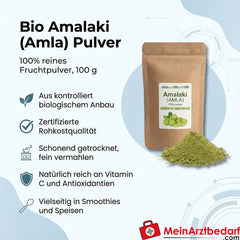 Zakres dostawy: 1 opakowanie 100 g organicznego proszku Amalaki (Amla) (jakość surowej żywności, 100% proszek owocowy) Producent: Vitalundfitmit100