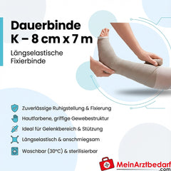 Zakres dostawy: 1 sztuka bandaża permanentnego K 8 cm × 7 m, w kolorze skóry