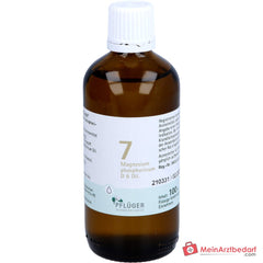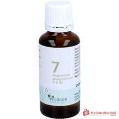 Zakres dostawy: 1 butelka kropli Biochemie Pflüger® No. 7 Magnesium phosphoricum D6 (1000 mg substancji czynnej, krople, 32% obj. alkoholu) - Producent: Biochemie Pflüger®