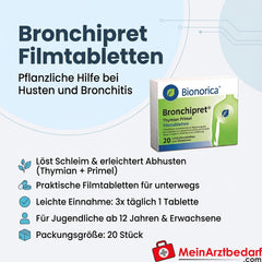 Zakres dostawy: 20 tabletek powlekanych Bronchipret (tymianek + pierwiosnek) - Producent: Bionorica
