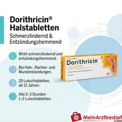 Zakres dostawy: 20 tabletek na gardło Dorithricin (przeciwbólowe i przeciwzapalne) - Producent: Dorithricin
