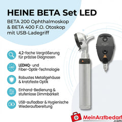 Heine BETA Set LED - Oftalmoskop BETA 200 i BETA 400 F.O. Otoskop z uchwytem do ładowania USB