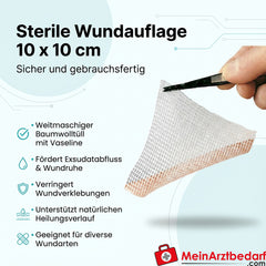 Zakres dostawy: 10 sztuk Opatrunek na ranę Lomatuell® sterylny, bawełniany tiul z białą wazeliną, 10 x 10 cm - Producent: Lomatuell
