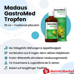 GastroMed Madaus® to tradycyjny lek ziołowy stosowany w łagodnych dolegliwościach żołądkowo-jelitowych, wzdęciach, wzdęciach, utracie apetytu i łagodnych dolegliwościach skurczowych.
