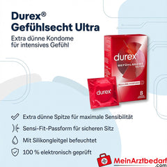 Durex Gefühlsecht Ultra oferuje połączenie cienkiego materiału i sprawdzonej niezawodności dla bardziej intensywnych doznań; patrz ulotka dołączona do opakowania.