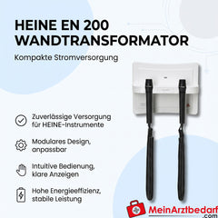 Zakres dostawy: 1 sztuka transformator ścienny Heine EN 200 (zasilacz) do montażu na ścianie, bez instrumentów - Producent: Heine