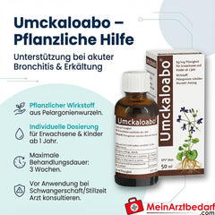 Zakres dostawy: 1 butelka kropli ekstraktu z korzenia pelargonii Umckaloabo.