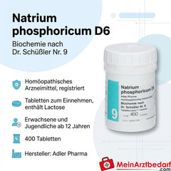 Natrium phosphoricum D6 als homöopathisches Arzneimittel zur biochemischen Anwendung nach Dr. Schüßler. Registriertes Präparat zur unterstützenden Anwendung bei verschiedenen Beschwerden; keine spezifische therapeutische Angabe. Bei anhaltenden oder neuen Symptomen ärztlichen Rat einholen.