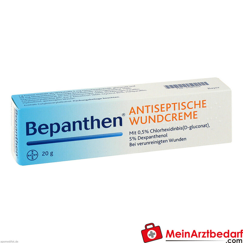 Lieferumfang: 1 Tube Bepanthen Antiseptische Wundcreme, Dexpanthenol 50 mg / Chlorhexidin digluconat 5 mg, 20 g Creme – Hersteller: Bayer