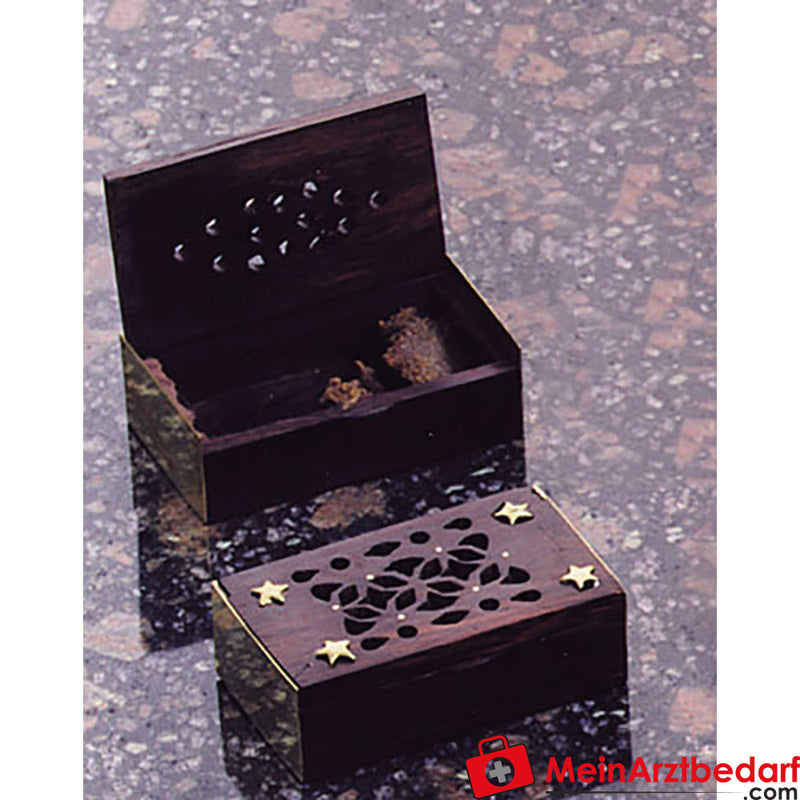 Die Holzduftdose ist ein wunderschön geschnitztes Behältnis mit Deckel. Sie ist ca. 6,5 cm lang und kommt ohne Amber.