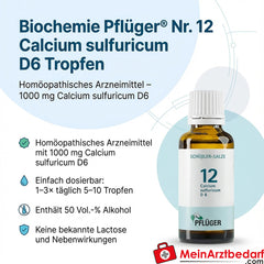 Lieferumfang: 1 Flasche Biochemie Pflüger® Nr. 12 Calcium sulfuricum D6 (1000 mg) Tropfen – Hersteller: Biochemie Pflüger®.