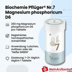 Biochemie Pflüger Nr. 7 Magnesium phosphoricum D6 ist ein registriertes homöopathisches Arzneimittel in Tablettenform zur unterstützenden Anwendung im Rahmen der biologisch-chemischen Funktionsmittel nach Dr. Schüßler. Praktische Darreichung zum Lutschen, Auflösen in Wasser oder als Heißzubereitung.