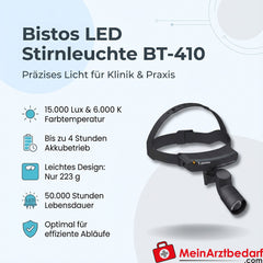 Bistos LED Stirnleuchte BT-410 — 15.000 Lux, Akku 4 h