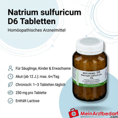 Lieferumfang: 10 Tabletten Natrium sulfuricum Trit. D6, 250 mg pro Tablette – Hersteller: Bombastus Biochemie.