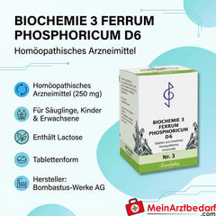 Lieferumfang: 1 Packung Bombastus Biochemie Ferrum phosphoricum D6 250 mg Tabletten – Hersteller: Bombastus