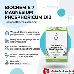 Lieferumfang: 7 Tabletten Bombastus Biochemie Magnesium phosphoricum Trit. D12 250 mg – Hersteller: Bombastus Biochemie