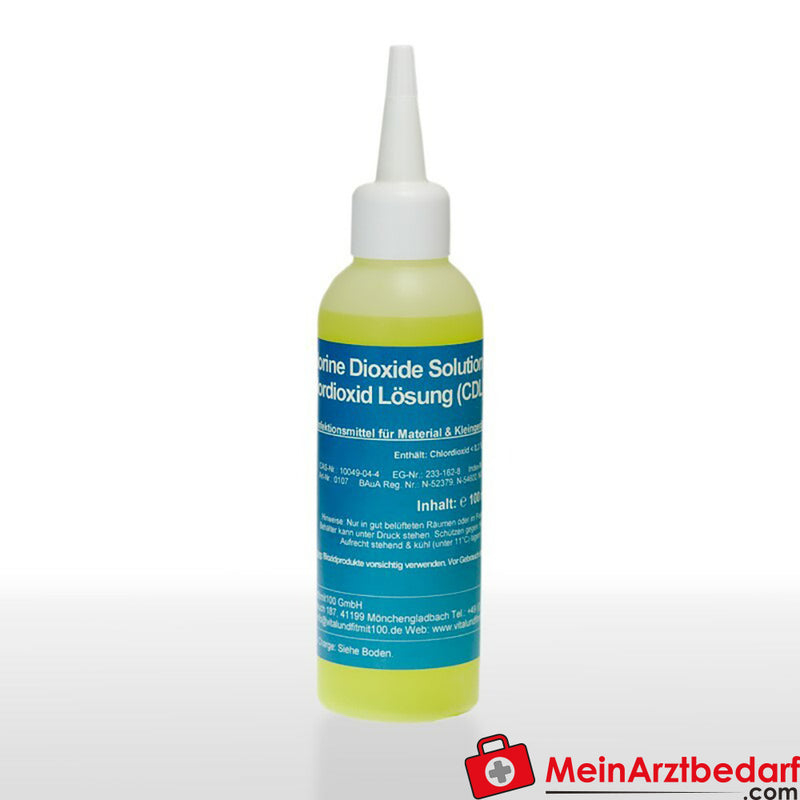 Lieferumfang: 1 Flasche CDS/CDL Chlordioxid-Lösung 0,3% (3000 ppm), 100 ml, HDPE-Tropferflasche. Hersteller: Vitalundfitmit100