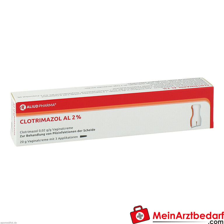 Lieferumfang: 1 Tube Clotrimazol AL 2% Vaginalcreme (für 3-tägige Behandlung) und 3 Einmal‑Applikatoren – Hersteller: AL