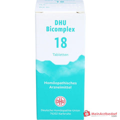 DHU Bicomplex 18 sind homöopathische Tabletten mit einem Komplex aus Mineralsalzen zur unterstützenden Anwendung bei Beschwerden des Kräftehaushalts. Die Darreichungsform eignet sich für Erwachsene und Jugendliche ab 12 Jahren. Einnahme und Dosierung richten sich nach akuten oder chronischen Beschwerden.