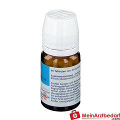 Enthält 250 mg Kalium phosphoricum in der homöopathischen Verdünnung D6 pro Tablette. Tabletten im Mund zergehen lassen. Keine spezifische therapeutische Indikation auf der Packung; Anwendung nach Packungsbeilage oder ärztlichem/Apothekenrat. Enthält Lactose und Weizenstärke; bei Unverträglichkeiten Rücksprache mit Fachpersonal.