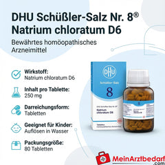 Lieferumfang: 80 Tabletten DHU Schüßler-Salz Nr. 8 Natrium chloratum D6, 250 mg – Hersteller: DHU